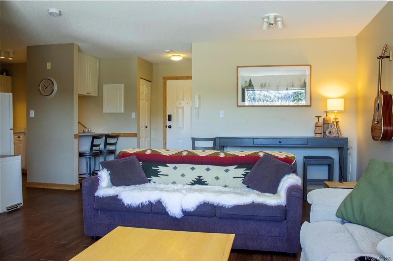 Enjoy stunning, unobstructed views of Strathcona Park from this inviting alpine retreat in Ptarmigan Ridge at Mt. Washington Alpine Resort. This bright 600 sq. ft. one-bedroom condo is ideally located on the ground floor, offering easy access in an elevator-free building. Large windows fill the open living space with natural light while showcasing beautiful sunrise views over the mountains. The functional kitchen includes a convenient pantry and opens to the comfortable living area, complete with a cozy fireplace to warm up after a day on the slopes. The building exterior has been recently updated with durable metal and Hardi-plank siding. Owners also have access to shared storage and a ski tuning area. Just a short walk to the lifts, this location offers fantastic year-round recreation with hiking and exploring nearby in Strathcona Park, while the Comox Valley is only a scenic 30-minute drive away. Low strata fees, no GST, and the leasehold titled unit comes fully furnished.