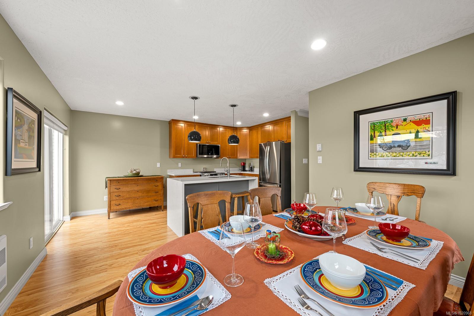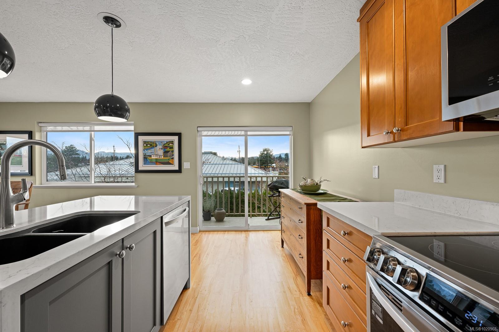 VIEWS & TRAILSIDE LIVING! This spacious three-level townhome is nestled between the beautiful Beaufort Mountains and the Salt Marsh bird sanctuary surrounding Comox Bay. As the original developer’s corner unit, it includes extra upper-floor windows and enhanced privacy and quiet enjoyment from the garden-level back patio. From the front deck, owners can take in daily sunsets over the inlet, watch fixed-wing and float planes at the air park, and even catch the occasional northern lights. Outdoor enthusiasts will appreciate direct access to walking and cycling trails, the marina, and nearby nature viewing. The home is a short drive to Mount Washington for skiing, Campbell River for fishing, and some of Vancouver Island’s most beautiful beaches in Parksville and Qualicum Beach. Or simply enjoy the rhythm of the tides, watching local dragon boaters and kayakers. Courtenay’s vibrant downtown is within walking distance, offering boutiques, eclectic restaurants, shopping centres, seasonal markets, the library, and city hall—all within a welcoming community of 28,000 with excellent traditional and holistic health services and the Comox Valley Hospital.. The townhome has been well maintained and includes updated appliances, safety equipment, and hot water tank, annual servicing of the garage door and Stelpro heaters and controls. A rare feature, the unit offers two separate laundry hookup locations—one on the main level near the flex room and the primary laundry room on the second level. Both upper-level bedrooms are bright, feature full ensuites, and enjoy views of the bay and Beaufort Mountains. This unique home is truly move-in ready.