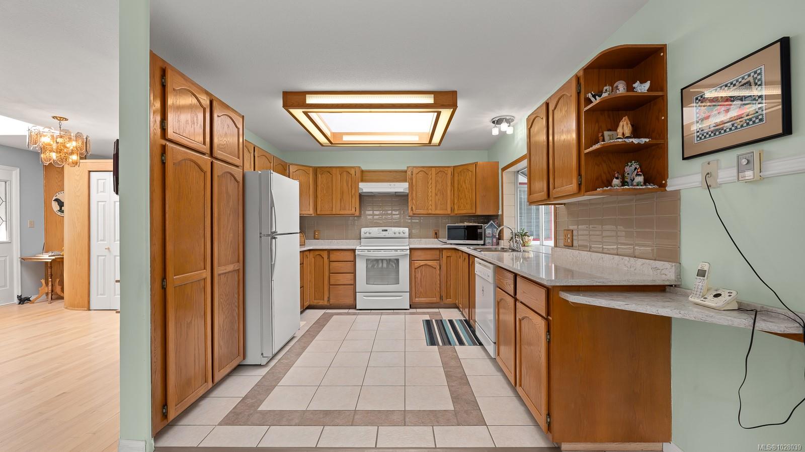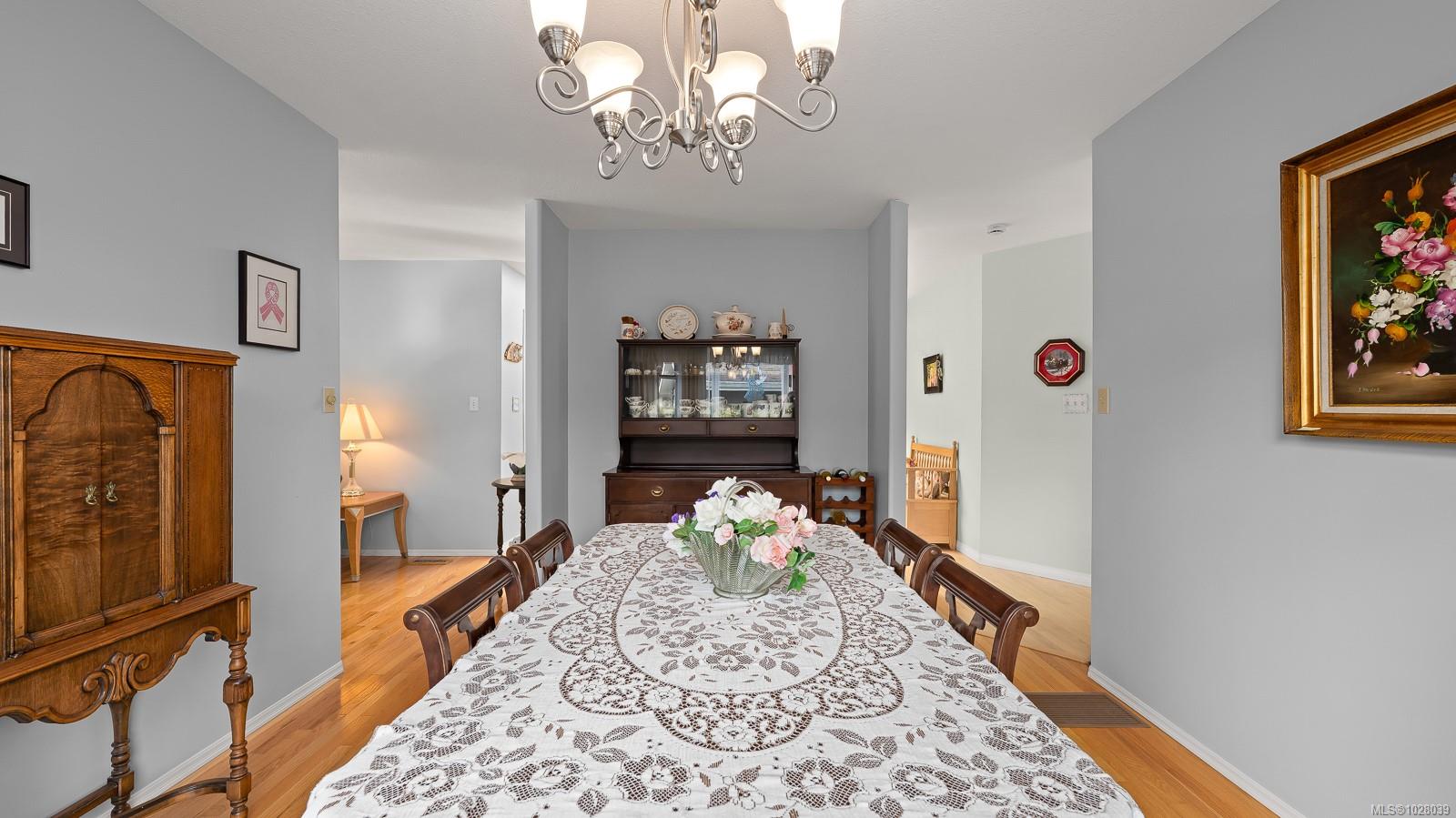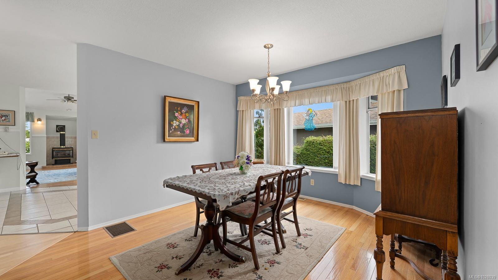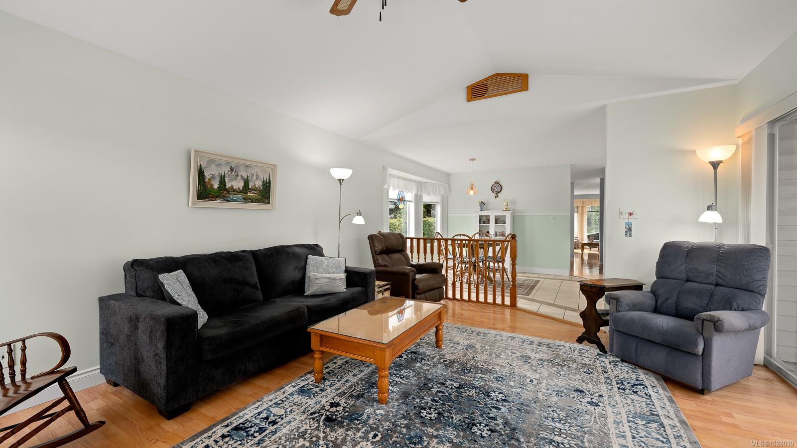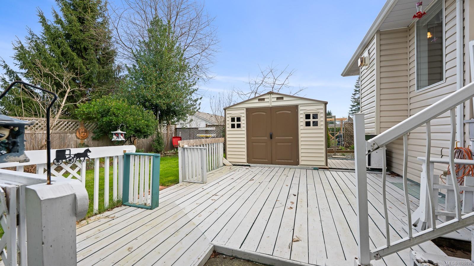 Welcome to this spacious 2,140 sq ft rancher located on a quiet crescent in desirable East Courtenay. Offering comfortable living in a peaceful neighborhood, this home is just a short drive to shopping, golf, and major retailers, making it a convenient choice for families and retirees alike. Inside, the home features a bright and functional semi-open layout with three bedrooms and two bathrooms. Large windows throughout the main living areas fill the home with natural light, creating a warm and inviting atmosphere. The generous kitchen offers plenty of workspace and storage and connects easily to the main living areas. Enjoy both a formal living room and dining room, plus a fantastic family room that opens onto the covered back deck—perfect for relaxing or entertaining year-round. The home also includes air conditioning, ensuring comfort during the warmer months. The primary bedroom offers a peaceful retreat with a walk-in closet and a spacious four-piece ensuite complete with a soaker tub and separate stand-up shower. Looking for extra storage? The 5 foot crawl space has exterior access and lots of dry space. Outside, the level lot is designed for easy maintenance and privacy. The property includes a driveway with space for multiple vehicles, mature landscaping, privacy hedges, an irrigation system, and a fully fenced backyard, creating a beautiful and functional outdoor space. Situated on quiet Mantle Drive in East Courtenay, the home is within walking distance to schools, nature trails, the Aquatic Centre, and Crown Isle Golf Course, and just a short drive to the hospital, airport, North Island College, and major shopping.